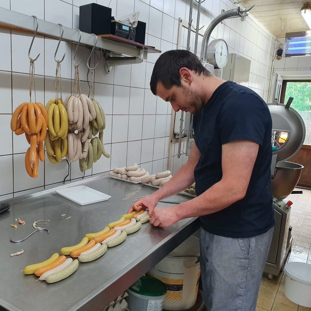 Ma formation a été assez variée : quelques mois dans une grande surface, quelques années dans une boucherie-charcuterie artisanale bio et quelques semaines en France. Je me suis ensuite mis en recherche d’une boucherie à reprendre, tout en travaillant comme boucher volant. Idéalement, il me fallait un emplacement où la philosophie correspondait à la mienne : 100% artisanal de qualité.